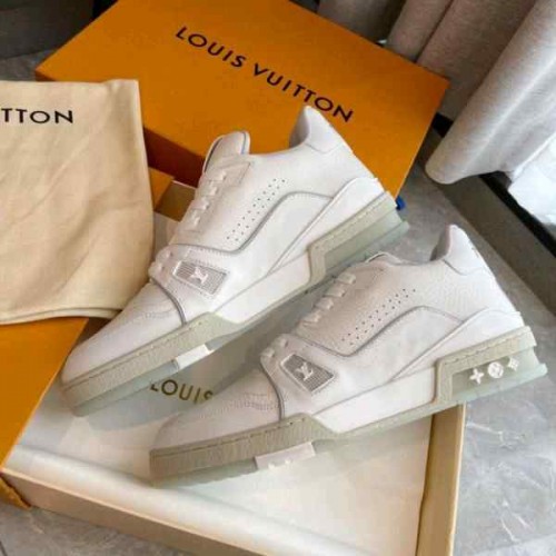 Louiis vuitton trainer sneaker white signature