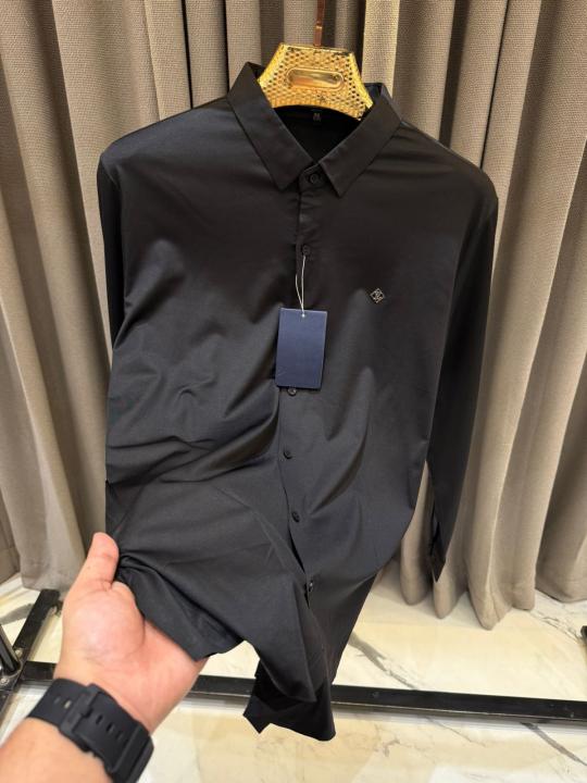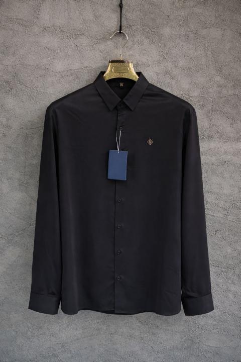 Louis_Vuitton Chest Logo Japanese Lycra Full Sleeves Shirt Black