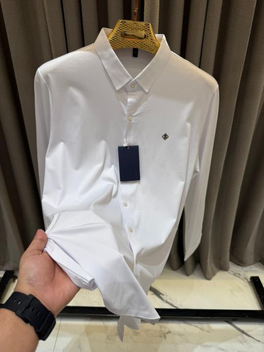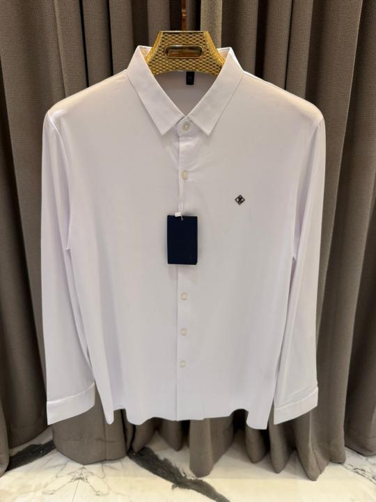 Louis_Vuitton Chest Logo Japanese Lycra Full Sleeves Shirt White
