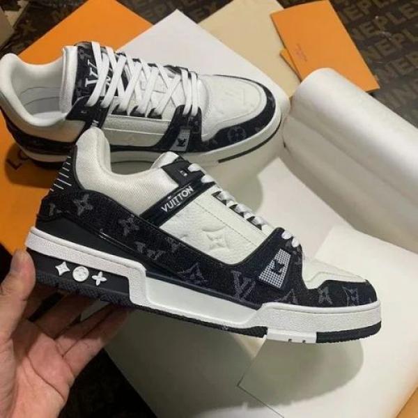 Louis Vuittton LV Trainer Monogram White Black Denim With Accessories