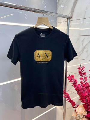 Arman i Exchange Black Premium Imported 240 GSM Interlock Fabric Round Neck Printed Logo Tshirt 3323