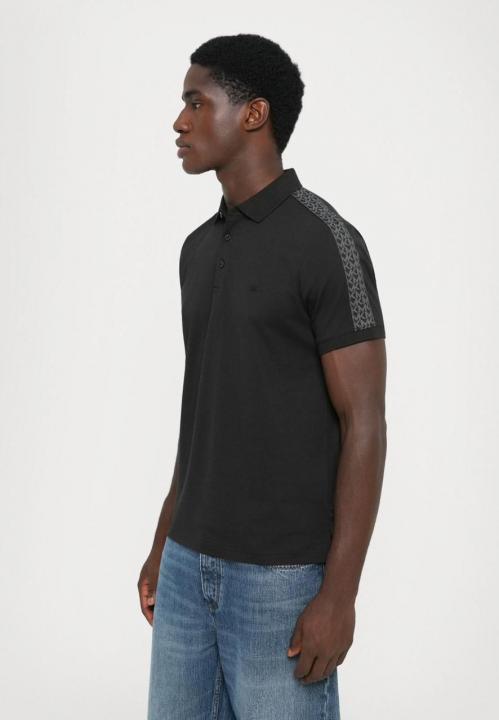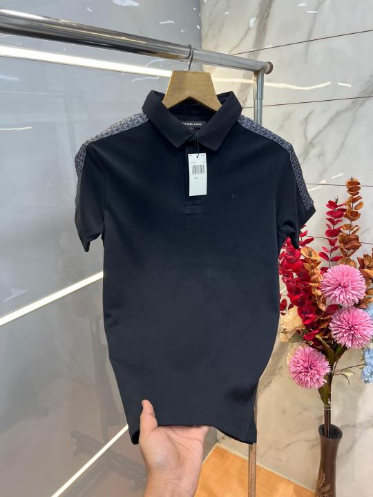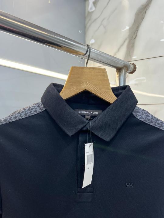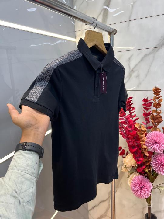 Michael Kor s Black Premium Imported Compact Yarn 240 GSM Interlock Fabric Polo Tshirt with Shoulder Design and Embroidered Logo 3909