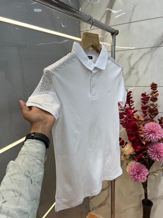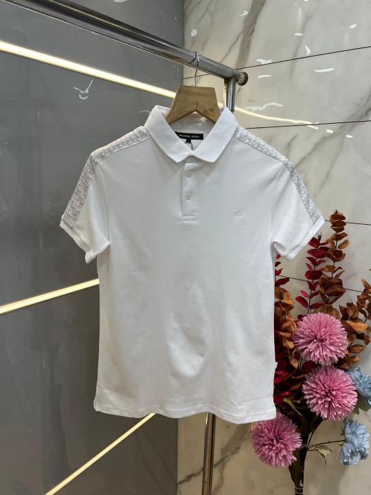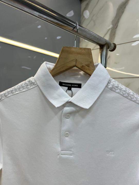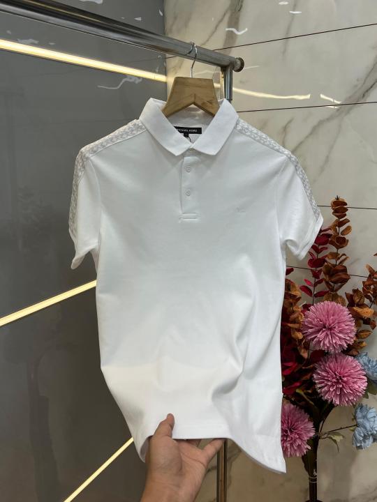 Michael Kor s White Premium Imported Compact Yarn 240 GSM Interlock Fabric Polo Tshirt with Shoulder Design and Embroidered Logo 3907