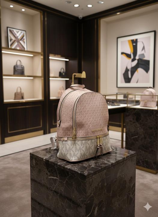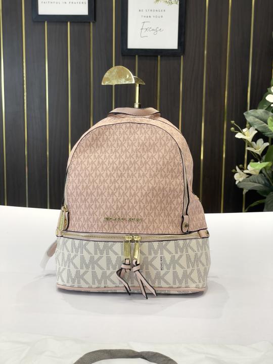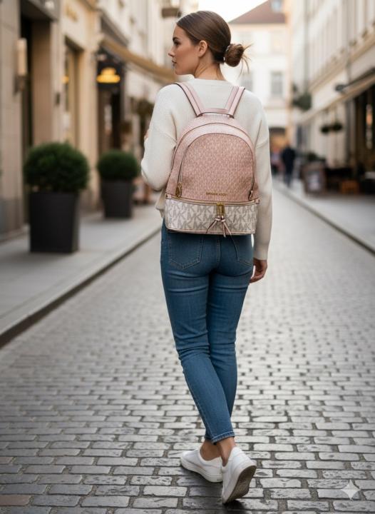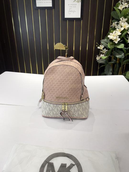 Michael_kors Rhea backpack double zipper with dust bag(0089-1-pink-pink)