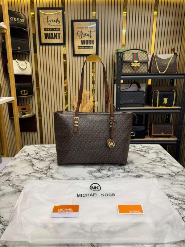 Home Hand bags Michael_Kors Jet Set Zip Logo Large Tote Bag With Dust Bag