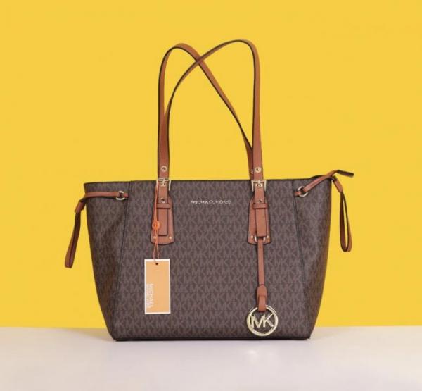 MICHEAL KORS VOYAGER BROWN LOGO PRINT TOTE BAG - 2616