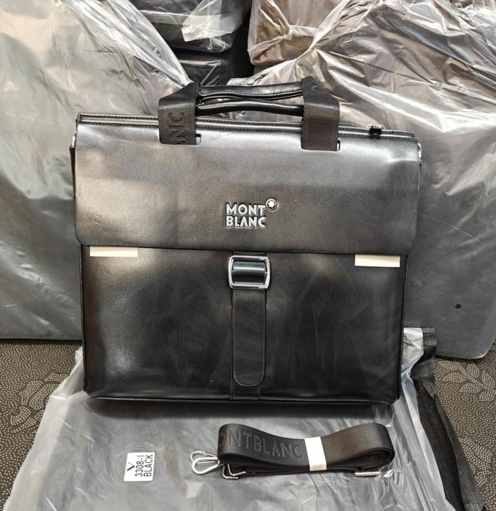 Mont Blanc Classic Snap Strap Leather Laptop Bag With Strap Black (V-8059-1)