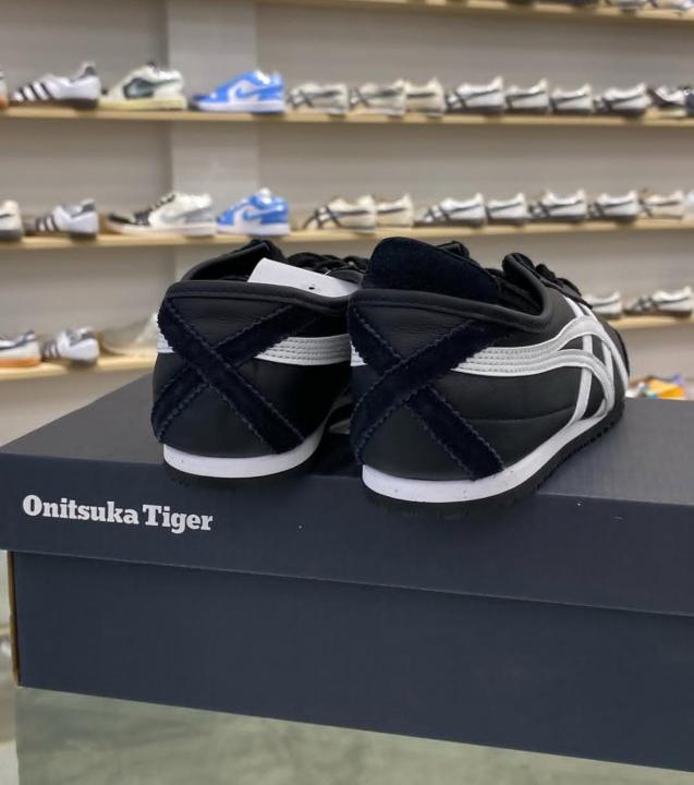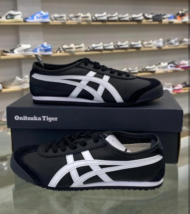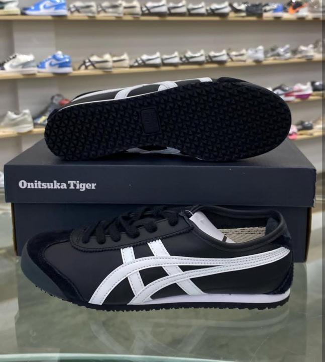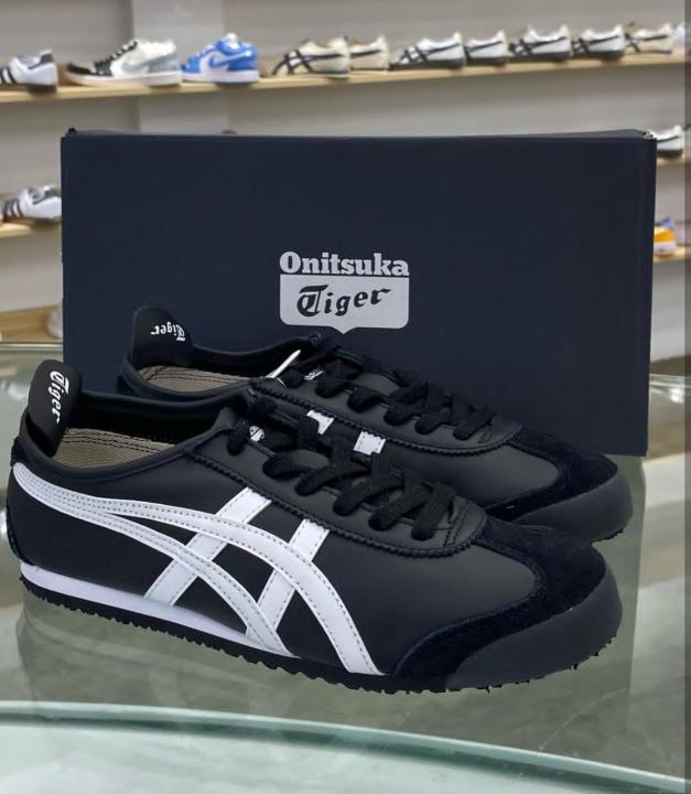 The Onitsuka Tiger Mexico 66 "Black/White" is the ultimate choice for those who prefer a sharp, minimalist aesthetic. This 7A Premium First Copy replica captures the low-profile, racing-inspired silhouette that has been a fashion mainstay since the 1960s. Featuring a deep black leather base with crisp white Tiger stripes, it offers a versatile look that transitions effortlessly from the office to the weekend.