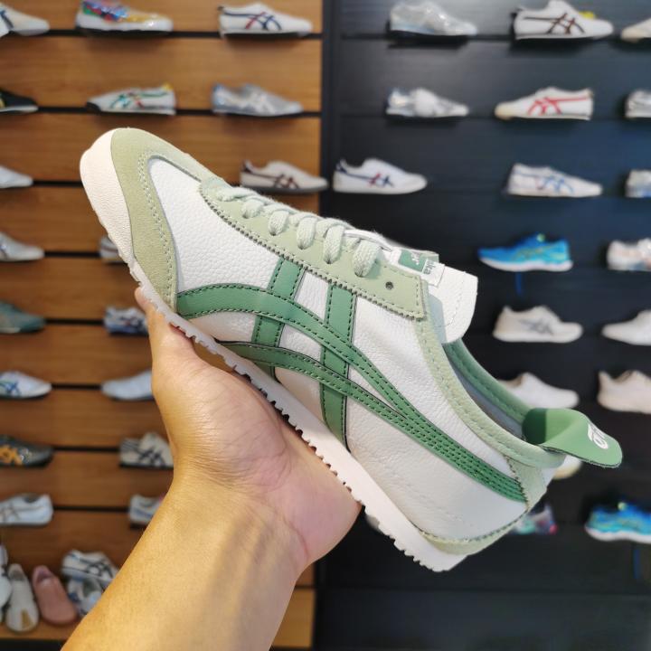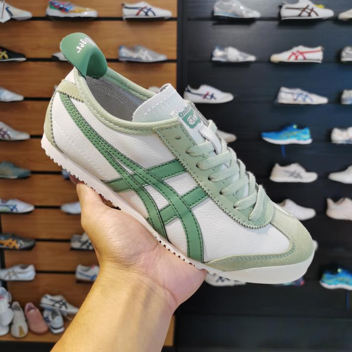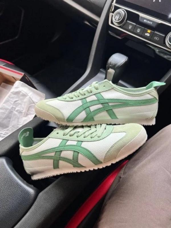 The Onitsuka Tiger Mexico 66 "Airy Green" is a breath of fresh air for the classic silhouette. This 7A Premium First Copy replica captures the unique, soft mint-green (Airy Green) leather base that is both cooling and sophisticated. Paired with white Tiger stripes, this colorway is a top choice for men looking to move away from standard neutrals into a subtle, pastel-toned aesthetic that works perfectly with light linens, chinos, or denim.