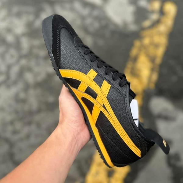 The Onitsuka Tiger Mexico 66 in "Black/Yellow" (Black/Tiger Yellow) is a sleek, moody counterpart to the famous "Kill Bill" colorway. This 7A Premium Quality (First Copy) replica meticulously captures the 1966 racing DNA with a deep black base that allows the vibrant yellow Tiger stripes to pop. It is a top-tier choice for men who want a more versatile, "stealth" aesthetic that retains the iconic retro silhouette while offering the comfort needed for modern urban living.