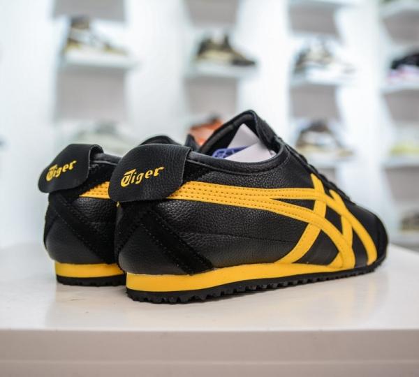 Bold Contrast Palette: Built on a premium Black upper with high-contrast Tiger Yellow stripes and matching branding on the tongue and heel flap.