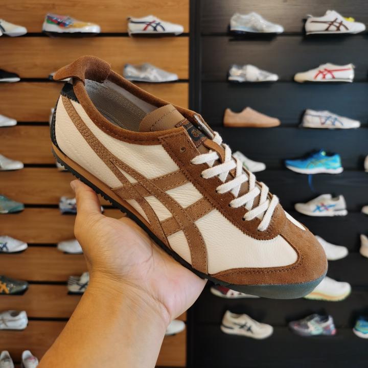 Heritage Design Details: Includes the iconic cross-stitched heel reinforcement and the "Tiger" branded heel flap in Cacao Brown for an authentic 1960s look.