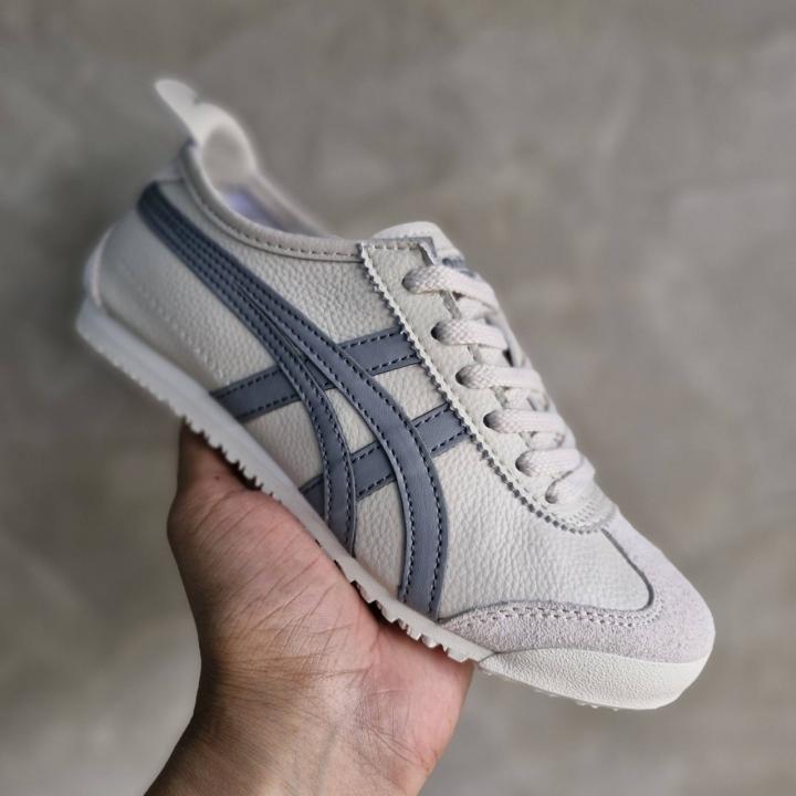 The Onitsuka Tiger Mexico 66 in "Cream/Grey" (often referred to as Cream/Grey Floss or Oyster Grey) is a masterclass in understated style. This 7A Premium Quality (First Copy) replica captures the vintage '60s track aesthetic with a contemporary neutral palette that pairs effortlessly with everything from casual linen trousers to raw denim. The soft cream base accented by cool grey stripes offers a cleaner, more versatile alternative to the standard high-contrast colorways.