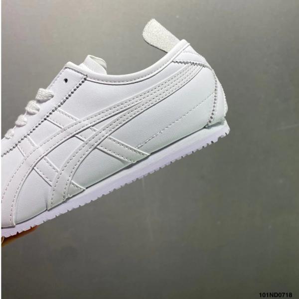 Monochromatic Branding: The iconic Tiger stripes are rendered in matching White, providing a sophisticated, low-key look that emphasizes the shoe's sleek silhouette over loud branding.