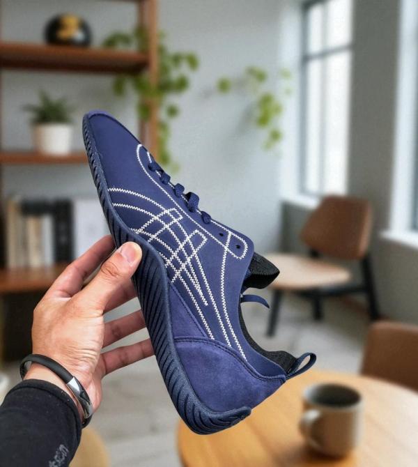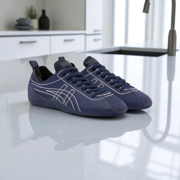 The Onitsuka Tiger Sclaw Low in "Navy Blue & White Stitch" is a sophisticated, seasonal take on the futuristic "Tiger Claw" silhouette. This 7A Premium Quality (First Copy) replica focuses on high-end textures, replacing the smooth leather of standard models with a rich, subdued cow suede that captures a refined "quiet luxury" vibe. The contrasting white perimeter stitching highlights the shoe's intricate, multi-panel design, making it an ideal choice for pairing with dark denim or tailored joggers.