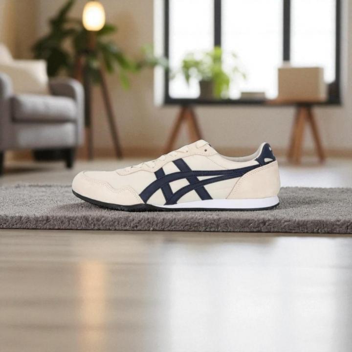 The Onitsuka Tiger Serrano in "Birch/Peacoat" is a refined, earthy iteration of the 1970s track spike icon. This 7A Premium Quality (First Copy) replica captures the essence of the original's lightweight racing DNA while delivering a sophisticated colorway that pairs a soft, cream-like Birch base with deep Peacoat (Navy Blue) accents. It is a top-tier choice for men who want a more padded, athletic alternative to the Mexico 66, featuring a "retro-runner" aesthetic that works seamlessly with modern street fashion.