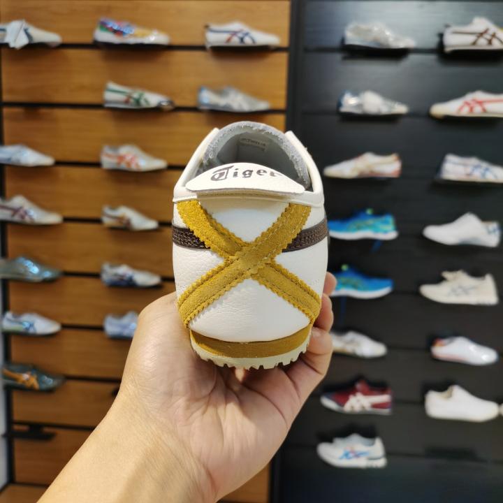 The Onitsuka Tiger Mexico 66 in "Cream/Licorice Brown" is a sophisticated, warm-toned take on the legendary 1966 track icon. This colorway features a rich "Cream" leather base paired with deep "Licorice Brown" Tiger stripes, offering a vintage, organic look that is much more versatile than the standard high-contrast black or red models. This 7A Premium Quality edition is a favorite in the 2026 Indian market for those seeking the "Quiet Luxury" aesthetic.