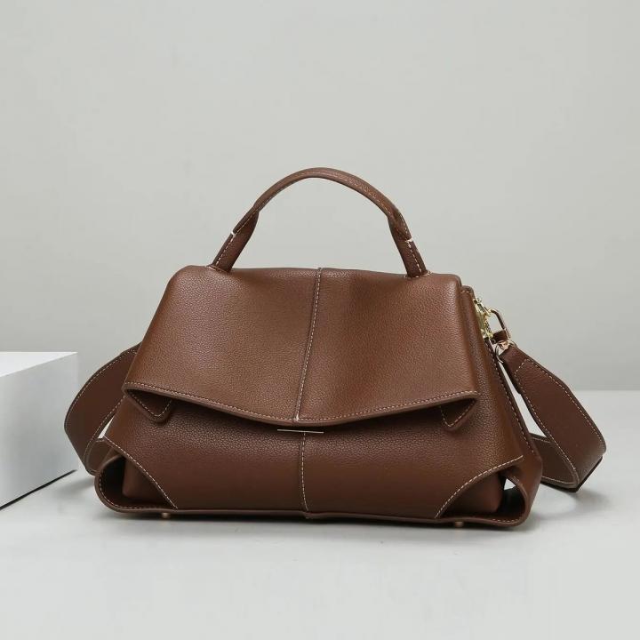 Polene Cyme Dual-Texture Leather Shoulder Bag With Dust Bag (Brown)