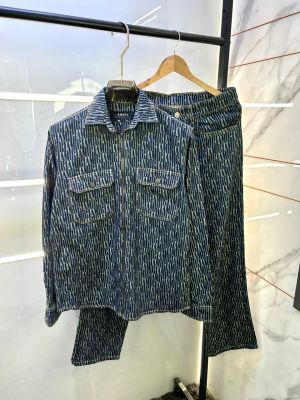 Amir i Blue Imported Monogram Print Super Premium Denim Track Suit F3333-BU