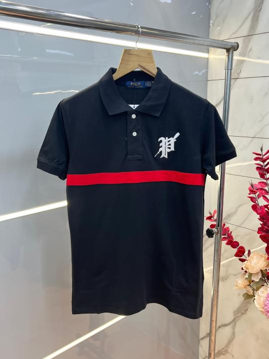 Ralp h Laure n Black Premium Cotton Matty fabric Polo Tshirt with Front Design and Embroidered Logo brand box 3827