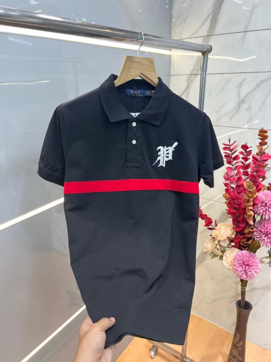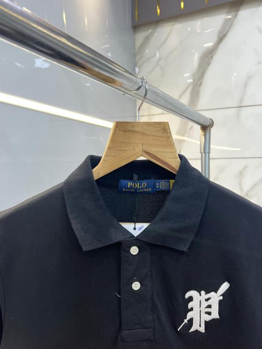 Home T-Shirts Ralp h Laure n Black Premium Cotton Matty fabric Polo Tshirt with Front Design and Embroidered Logo brand box 3827