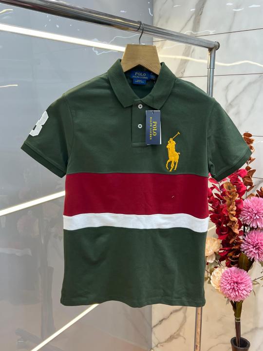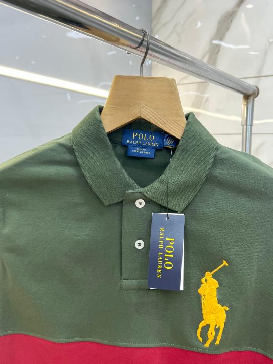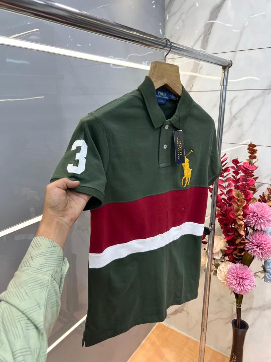 Home T-Shirts Ralp h Laure n Green Premium Cotton Pique fabric Polo Tshirt with Front Design and Embroidered Logo 3795