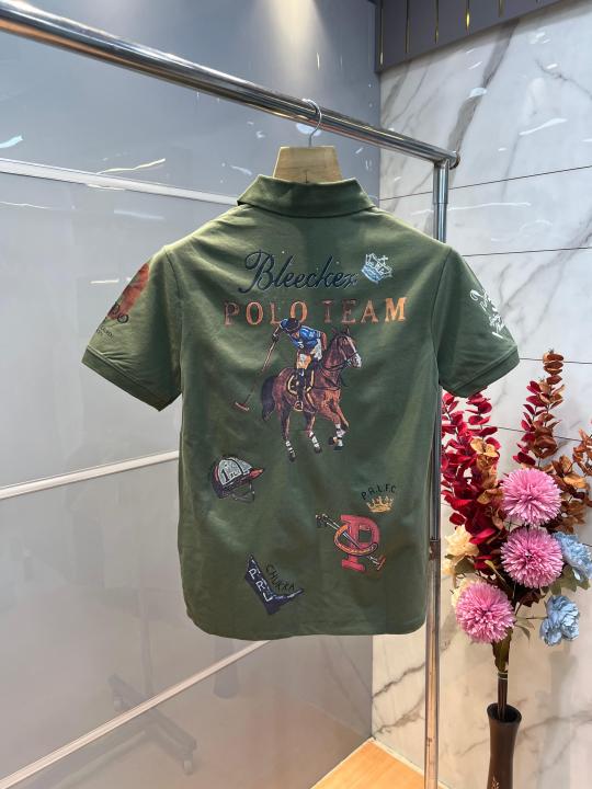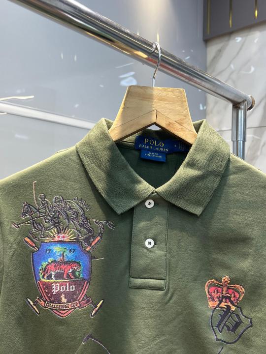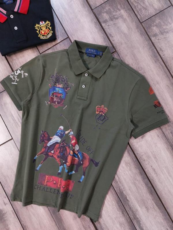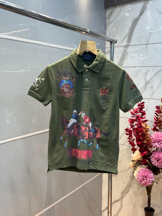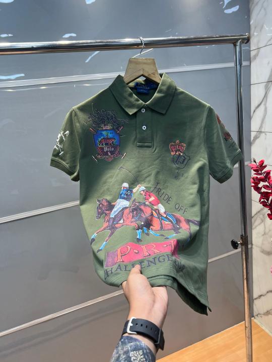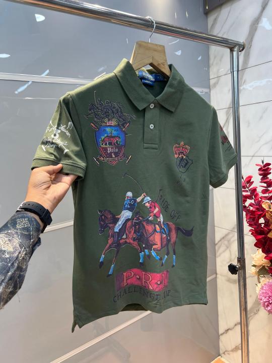 Ralp h Lauren Green Premium Cotton Pique fabric Polo Tshirt with Front Design and Embroidered Logo 4092