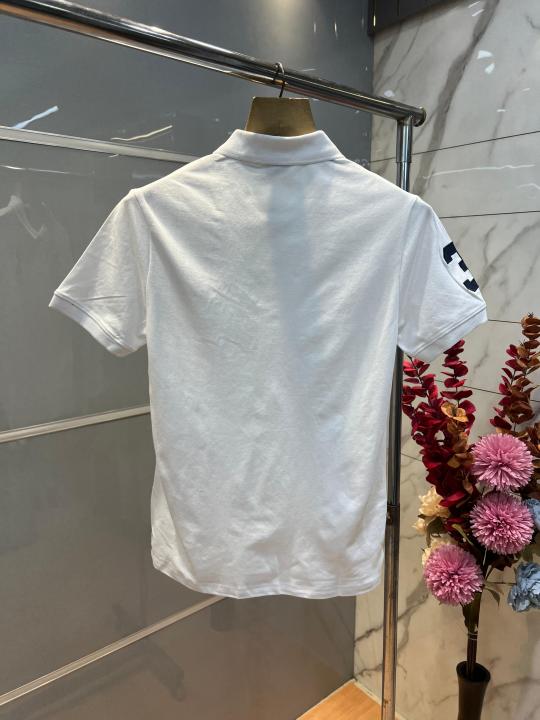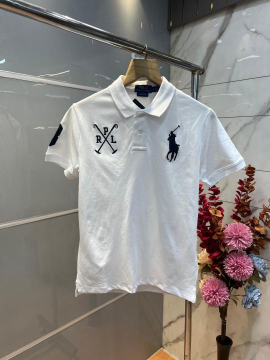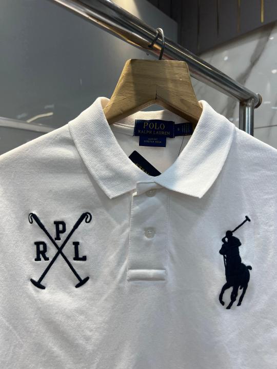 Home T-Shirts Ralp h Lauren White Premium Cotton Pique fabric Polo Tshirt with Front Design and Embroidered Logo 4095
