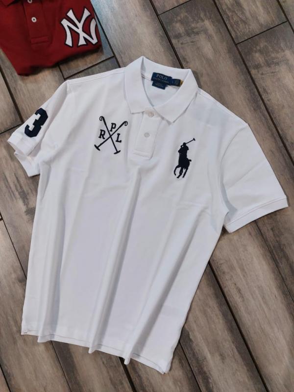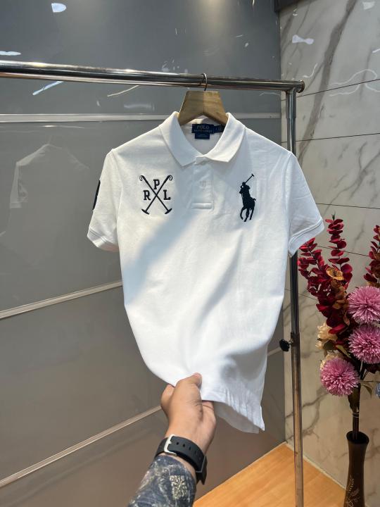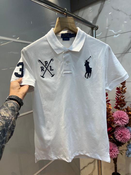 Ralp h Lauren White Premium Cotton Pique fabric Polo Tshirt with Front Design and Embroidered Logo 4095