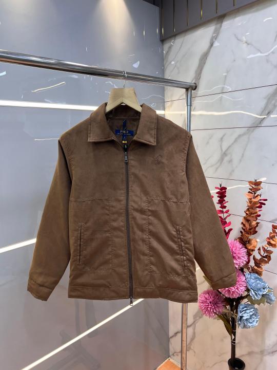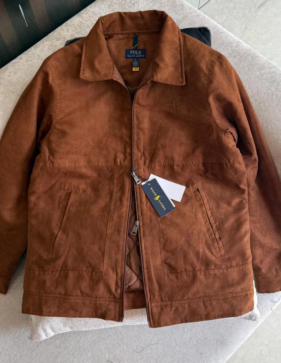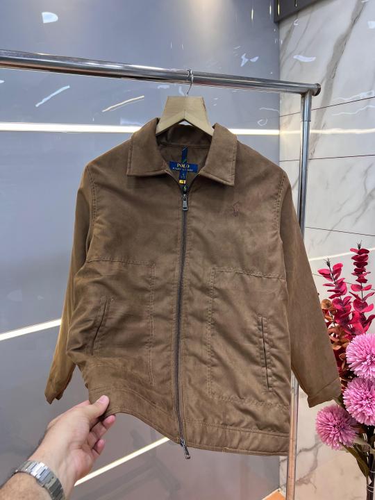 Home Premium sweatshirts Ralph Laure n Brown Premium Imported Suede fabric Double chain Zipper Jacket 3516