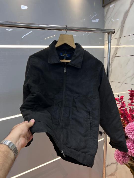 Home Premium sweatshirts Ralph Laure n Black Premium Imported Suede fabric Double chain Zipper Jacket 3515