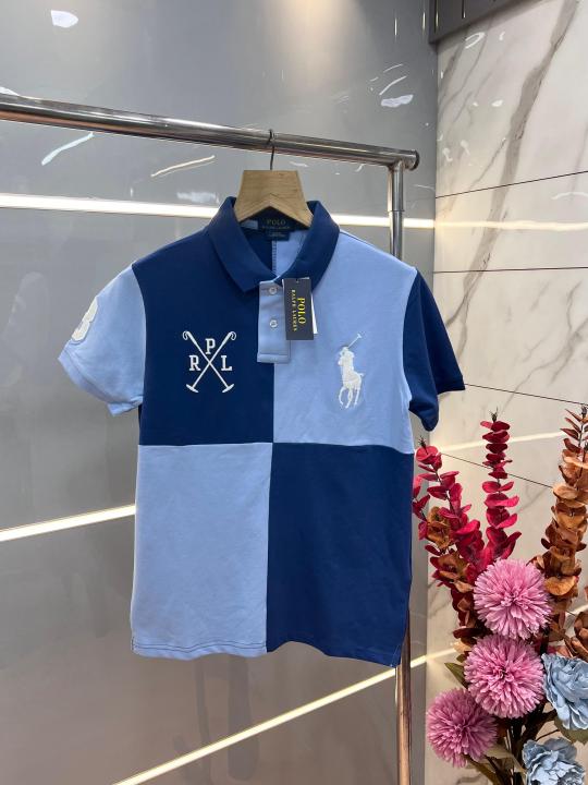 Home T-Shirts Ralph Laure n Sky Blue Premium Cotton Pique fabric Polo Tshirt with Front Design and Embroidered Logo 3595