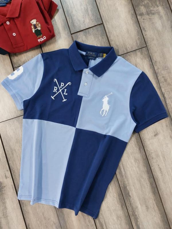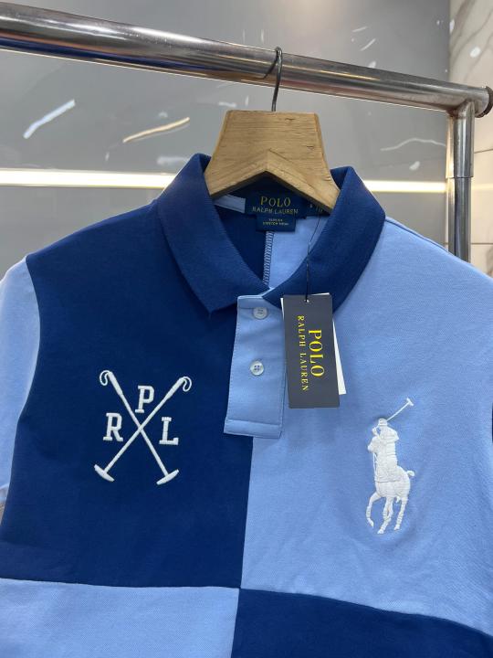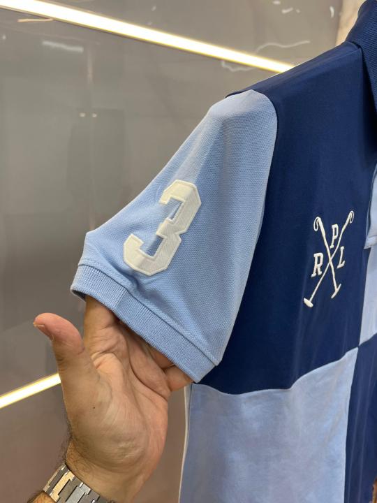 Ralph Laure n Sky Blue Premium Cotton Pique fabric Polo Tshirt with Front Design and Embroidered Logo 3595