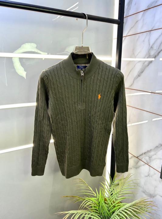 Home Premium sweatshirts Ralph_Lauren Green Imported knitted Premium Pullovers F3216-GR
