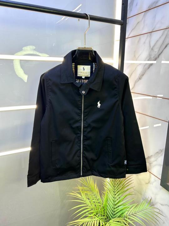 Home Jackets Ralph_Lauren Imported Embroidery Logo Super Premium Black Zipper Jacket F3353-B2