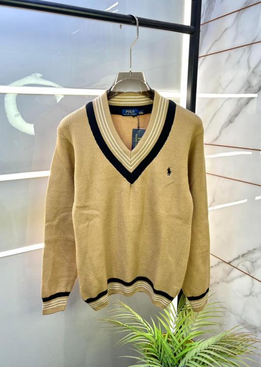 Home Premium sweatshirts Ralph_Lauren Imported Khaki knitted Super Premium Pullovers F3280-KH