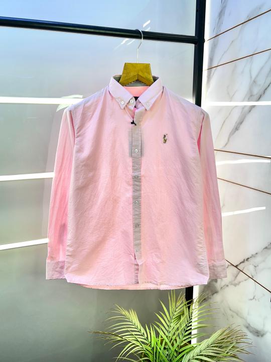 Home Shirts Ralph_Lauren Polo Pink Oxford Lycra Premium Shirt F2979-PI