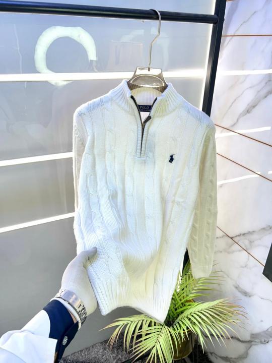 Home Premium sweatshirts Ralph_Lauren White Imported knitted Super Premium Pullovers F3330-WH