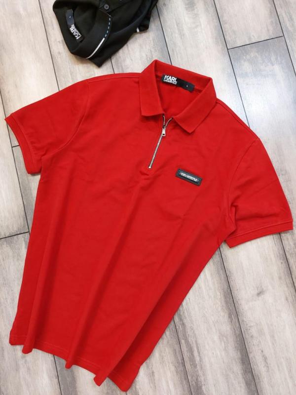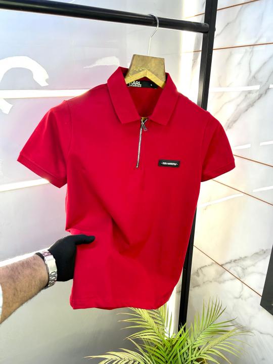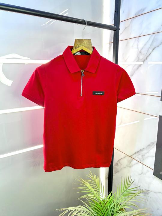 Home T-Shirts Sale Karl Lagerfeld Red Zipper Polo Premium Collar Neck T-shirt F2641-RE
