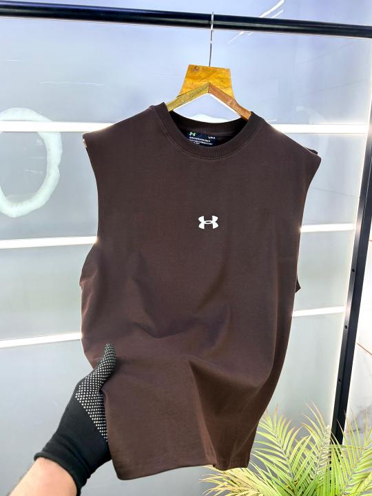 Sale Under Armou r Brown Sleeveless Premium Sendo T-shirt With Back printed 1798