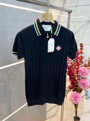 Casablanc a Black Premium Knitted fabric Polo Tshirt with Collar Design and Embroidered Logo 3815