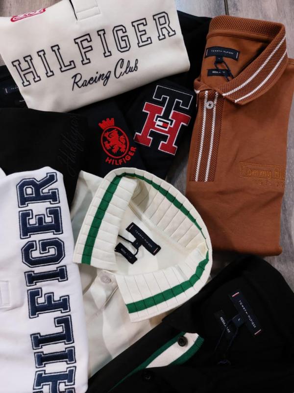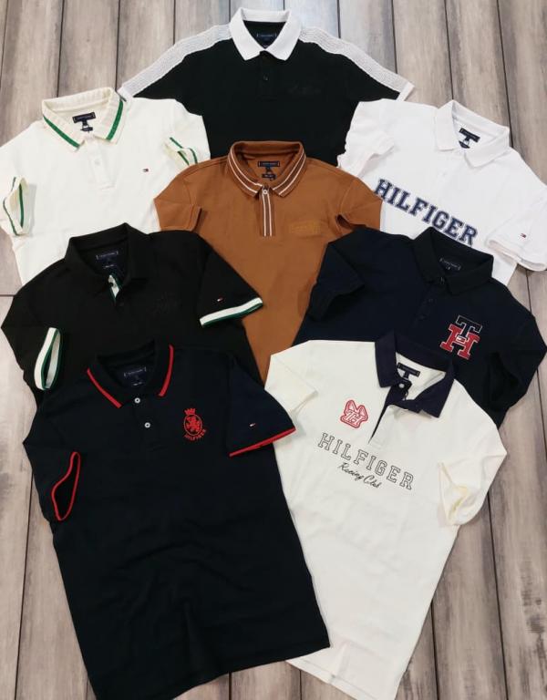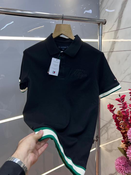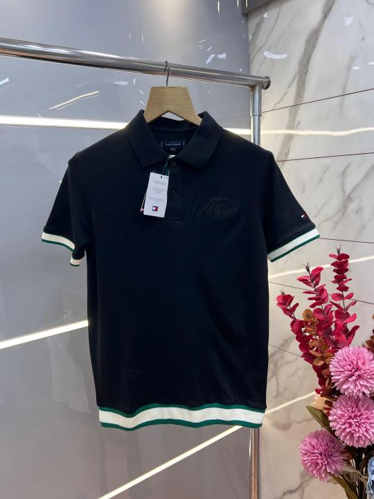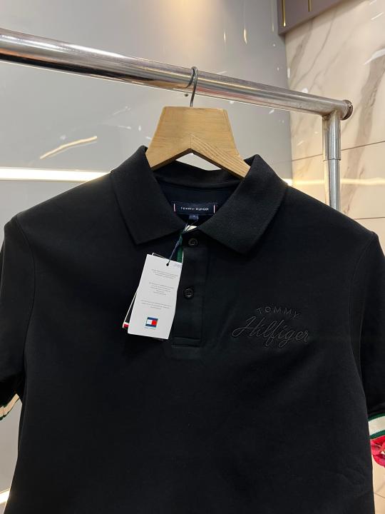 Tommy Hilfige r Black Premium 240 gsm interlock compact cotton fabric Polo Tshirt with Sleeves Design and Embroidered Logo 3465