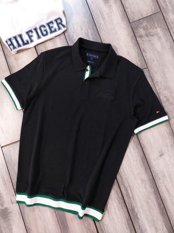 Home T-Shirts Tommy Hilfige r Black Premium 240 gsm interlock compact cotton fabric Polo Tshirt with Sleeves Design and Embroidered Logo 3465