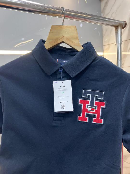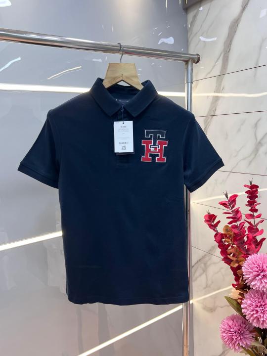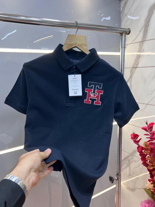 Tommy Hilfige r Navy Premium 240 gsm interlock compact cotton fabric Polo Tshirt with Sleeves Design and Embroidered Logo 3467