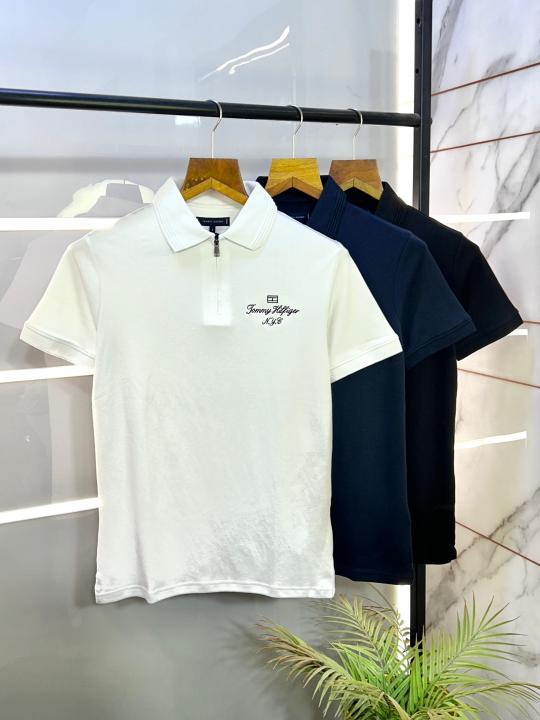 Hacke t Black Premium 240 gsm interlock compact cotton fabric Polo Tshirt with Collar and Sleeves Design Zip Style 3212