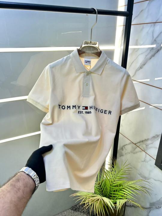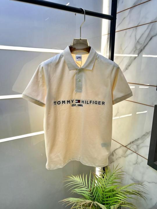 Home T-Shirts Tommy_Hilfiger Off-white Polo Premium Collar Neck T-shirt F2630-BE