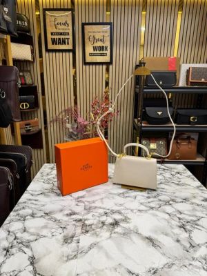 Hermes Kelly Top Handle Bag With Damage Box (White)