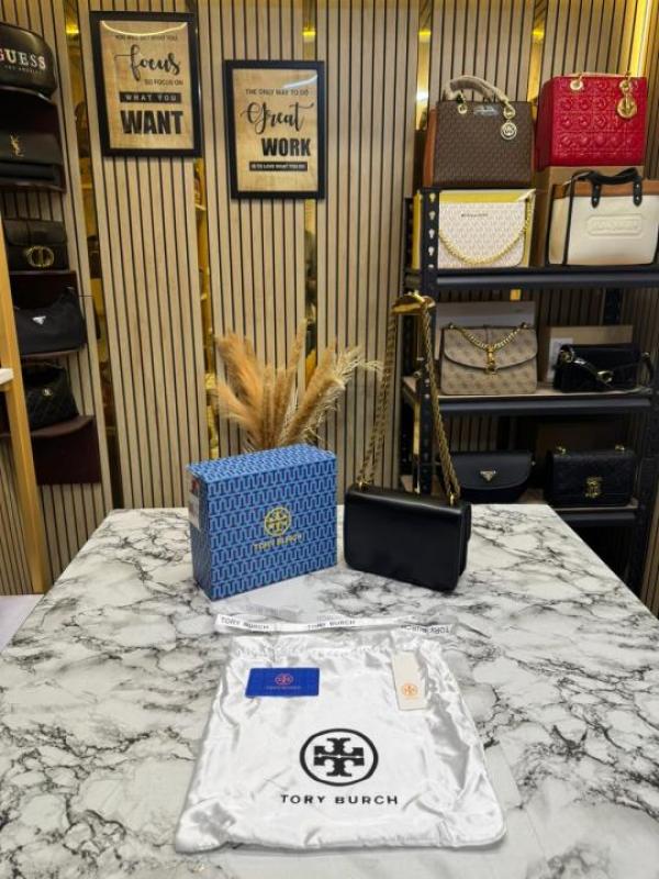 Tory_Burch Eleanor Logo Emblem Shoulder Bag With Box And Dust Bag (Black-TR919)