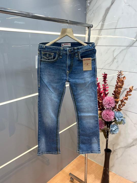 Home Jeans True Religio n Blue Shade Boot cut Premium Imported Stretchable lycra fabric Denim with back flap pocket Design 3706