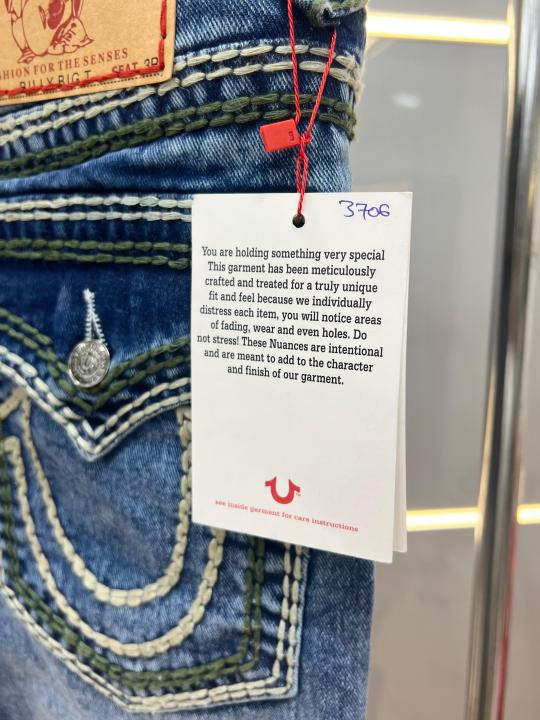 True Religio n Blue Shade Boot cut Premium Imported Stretchable lycra fabric Denim with back flap pocket Design 3706